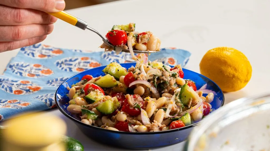 Use cannellini beans if you can—they’re soft, buttery, and mild, and they absorb flavours beautifully. They’re also high in fiber, so this salad is more filling than it looks.